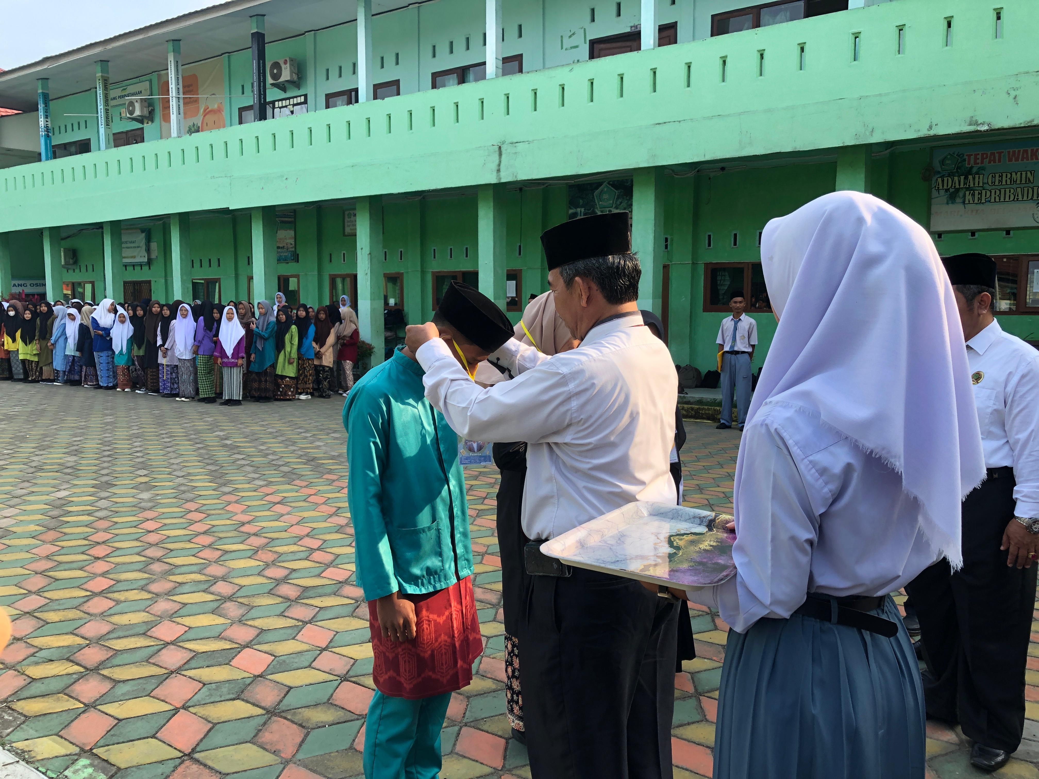 Petugas upacara telah menepati posisinya masing-masing. Para siswa berbaris rapi. Seluruh guru dan pegawai madrasah pun turut hadir. Pembina upacara dipimpin langsung oleh Kepala Madrasah MAN 3 Kota Jambi, Bapak H. Ambok Pera Afrizal, M.A. Kemudian dilanjutkan dengan Penyematan Tanda Peserta dan Panitia MATSAMA oleh Kepala Madrasah. Dalam sambutannya beliau menyampaikan pesan kepada para siswa “ Harapan Saya semoga siswa baru tahun ini bisa lebih mengenal lingkungan madrasah, disiplin, hormat kepada guru dan orang tua sehingga nanti belajar dapat ilmu yang bermanfaat dan berguna di lingkungan madrasah†ujar kepala madrasah.