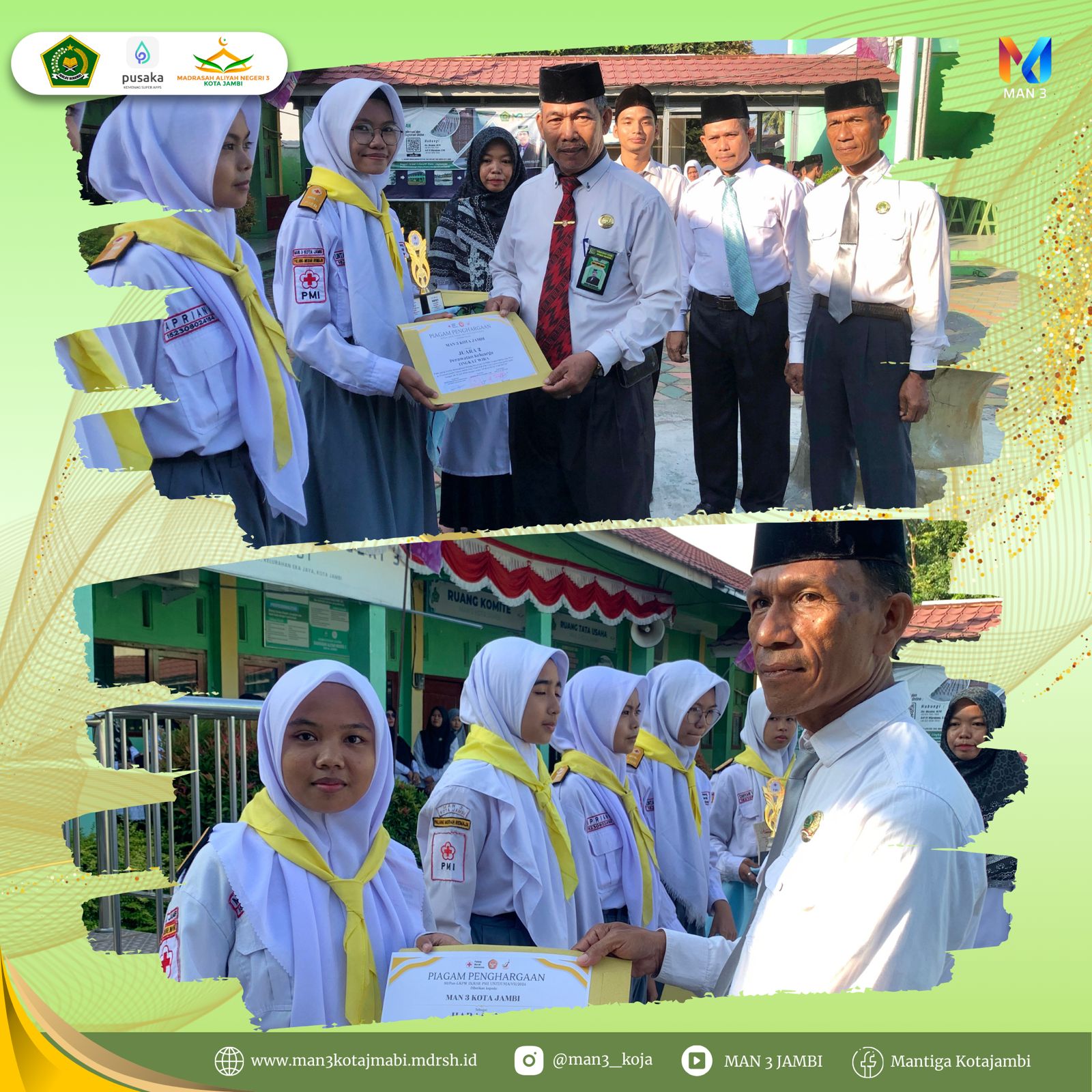 Setelah amanat upacara, dilanjutkan dengan prosesi pemberian penghargaan kepada siswa berprestasi dalam ekstrakurikuler PMR. Ekskul PMR Wira 024 MAN 3 Kota Jambi berhasil meraih juara dalam kegiatan Lomba Ketangkasan Palang Merah (LKPM) IX yang diselenggarakan Universitas Jambi bulan Juli lalu. Prestasi yang diraih adalah juara 2 Lomba Perawatan Keluarga dan Juara Harapan 2 Lomba Jurnalistik. Saat ditemui, Kepala Madrasah, Bapak H. Ambok Pera Afrizal, M.A., memberikan selamat kepada pemenang lomba, beliau berharap agar siswa dapat aktif dalam ekskul yang ada di madrasah.
