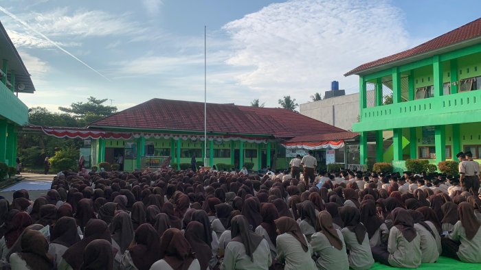 Jambi, 19 September 2025 — Suasana khidmat menyelimuti lapangan utama MAN 3 Kota Jambi pada Jumat pagi ini dalam kegiatan rutin pembacaan Surah Yasin yang dilaksanakan setiap pekan. Kegiatan yang berlangsung sejak pukul 07.00 WIB ini dipimpin oleh murid dari kelas XI F2 selaku petugas pembacaan, dan diikuti oleh seluruh warga madrasah, mulai dari murid, guru, hingga staf tata usaha.