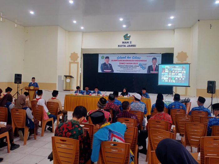 Jambi, 1 Oktober 2025 — Kepala MAN 3 Kota Jambi, Bapak H. Ambok Pera Afrizal, M.A., didampingi para Wakil Kepala Madrasah, menghadiri acara Pembukaan Olimpiade Madrasah Indonesia (OMI) Tingkat Provinsi Jambi Tahun 2025 yang diselenggarakan di MAN 2 Kota Jambi, Rabu (1/10). Kegiatan ini secara resmi dibuka oleh Kepala Bagian Tata Usaha Kanwil Kementerian Agama Provinsi Jambi, Bapak H. Faizan, S.Ag., M.H., yang hadir mewakili Kepala Kantor Wilayah Kementerian Agama Provinsi Jambi.