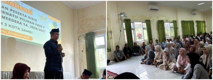 Jambi – MAN 3 Kota Jambi menggelar kegiatan sosialisasi pemetaan peserta didik alternatif pilihan Fase F Kurikulum Merdeka Berbasis Cinta Tahun Ajaran 2026/2027 pada Rabu, 11 Februari 2026. Kegiatan ini berlangsung di Aula Az-Zikra MAN 3 Kota Jambi dan dihadiri oleh para wali murid kelas X.