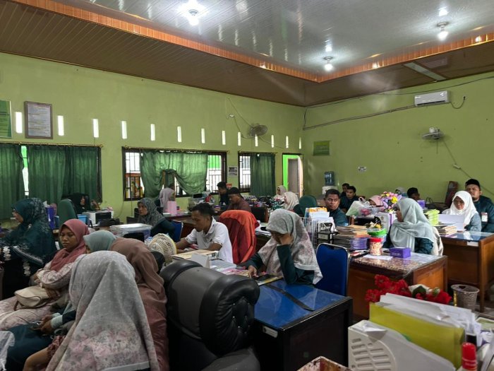 Suasana rapat berlangsung dengan penuh kebersamaan dan partisipatif, di mana para guru dan tenaga kependidikan turut menyampaikan masukan demi kelancaran program madrasah.